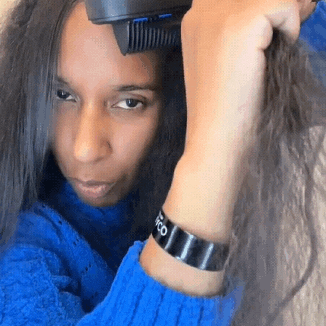 Tengo el pelo muy rizado y con este cepillo tardo la mitad de tiempo que antes con la plancha. Me deja el cabello liso, suave y con brillo. ¡No lo cambio por nada!